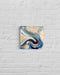 Experiments with primary colors and a variety of different techniques. This particular painting is a Dutch bucket pour with blue, orange and a splash of white. A bit of pearlized paint was used as well, leading to some reflective results.