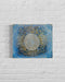 24”x18” acrylic painting of a golden solar emblem with a paint pour background on a stretched canvas. This brightly colored painting features different metallic paints reflected in the light.