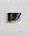 Experiments with primary colors and a variety of different techniques. This particular painting is a Dutch bucket pour technique using white, black and silver. This beautifully balanced painting features intricate detail formed by the subtle mixing of the colors. A crafted balance between black and white, this painting will look good in any room!